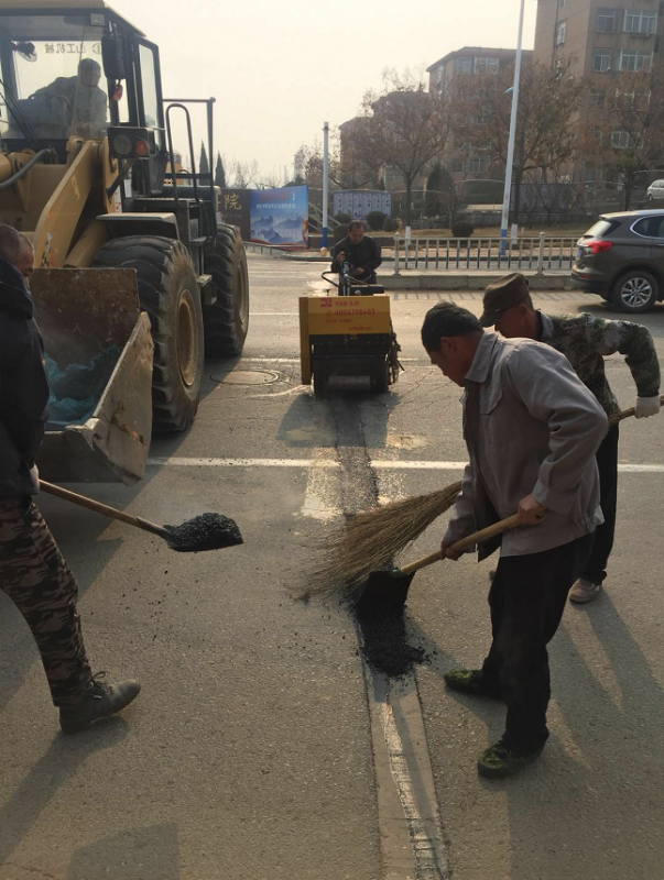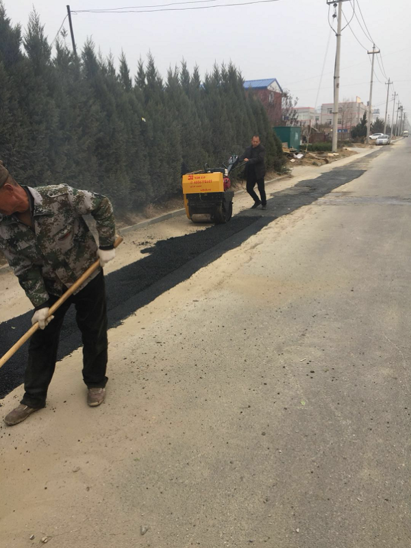 手扶壓路機(jī)施工現(xiàn)場。